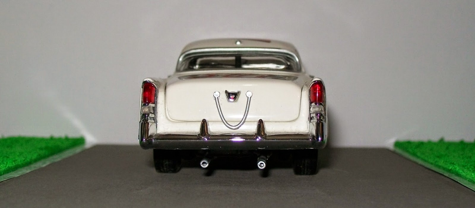 Amigos, hoy les presento el tercer y último integrante de este hermoso set de Team Caliber de coches de Stock Car del NASCAR y la AAA. Se trata de un Chrysler 300B Coupé, utilizado por Buck Baker para coronarse campeón del NASCAR en 1956, representando al modelo correspondiente, como en toda la serie, a la carrera disputada en el circuito de Daytona Beach. Como verán, es el más grande de los tres modelos, y también viene con las tradicionales aperturas de puertas, capot y baúl, que nos dejan apreciar sus entrañas (para ver los anteriores, sólo tienen que apretar la palabra Ford o Hudson, y los llevará directamente a ellos).