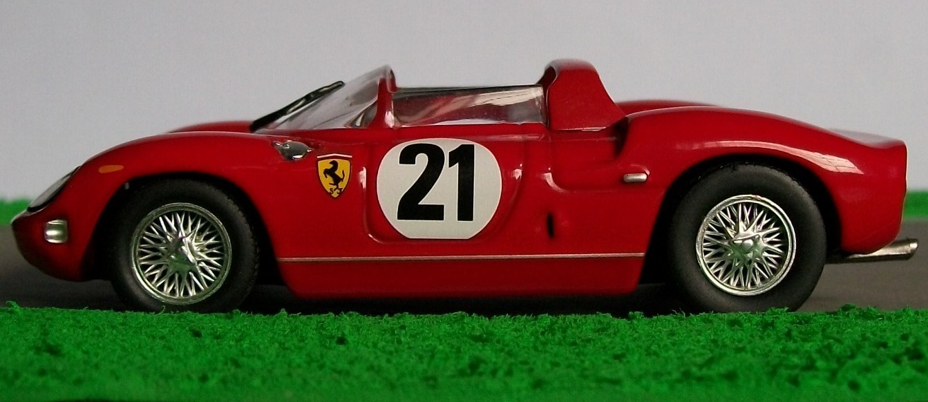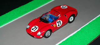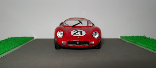 Amigos, hoy les presento una Ferrari 250P, ganadora de la edición 1963 de las 24 Horas de Le Mans, conducida por los italianos Ludovico Scarfiotti y Lorenzo Bandini. En esta edición de 1963, Scarfiotti y Bandini se impusieron por 16 vueltas de ventaja al segundo, debiendo remarcar que los seis primeros clasificados fueron coches del Cavallino Rampante. Por esos años, Ferrari ganó consecutivamente las ediciones de 1960 a 1965, no logrando después nunca más el triunfo en la mítica competencia francesa; los hinchas de la Scudería de Maranello extrañan muchos esos años... La miniatura es de uno de los tantos coleccionables de Ferrari presentados por Ixo-Altaya.