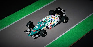 Esta hermosa miniatura de Minichamps que les presento hoy, muestra el multicolor B186 tal como fue usado a lo largo de todo el año. La pequeña banderita rojo y blanca a los costados del cockpit, nos indica que el auto número 19 manejado por Teo Fabi pertenece al GP de Austria.