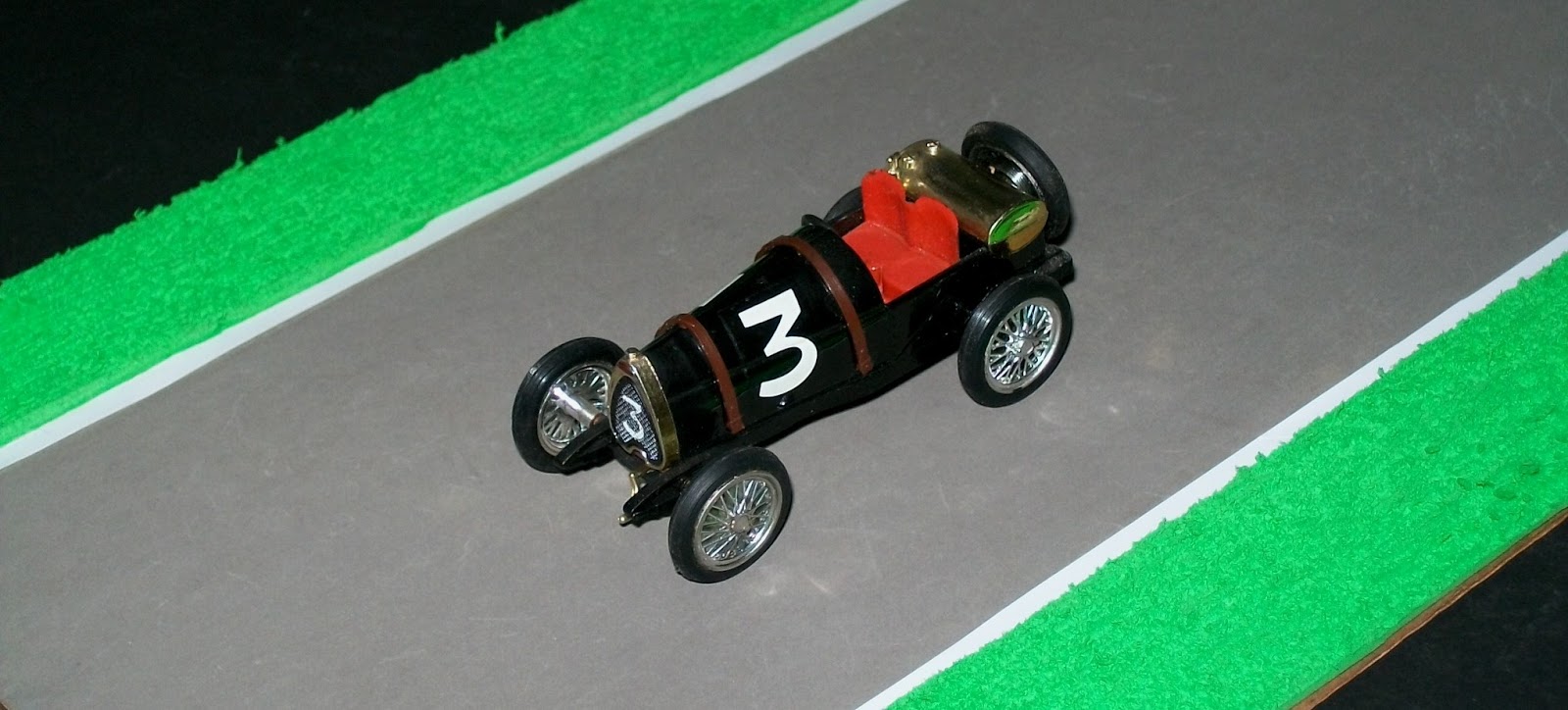 Por lo tanto me puse a buscar información y, principalmente, fotos para corroborar los datos, ya que el auto me gustaba mucho. Luego de días de búsqueda, di con unas fotos que me mostraban que el coche había corrido esa carrera y con esos números; así que inmediatamente apreté "comprar". Esta vez, Brumm no se había equivocado. Esas fotos que encontré son las tres primeras que muestro, donde se ve a la Bugatti Type 13 con el nº3 en Brescia; de ahí en adelante, el coche fue llamado "Bugatti Brescia", en honor al triunfo en esa carrera. Increíble haber encontrado fotos de un auto en una carrera corrida hace casi 100 años. Por supuesto, como los coches en mi vitrina están ordenados cronológicamente, es el primer auto de todos, el más antiguo.