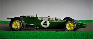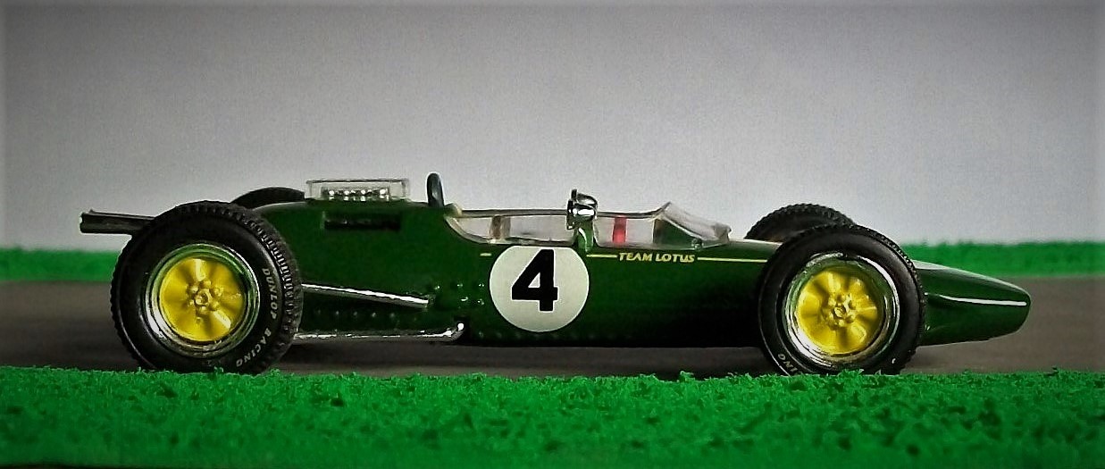 Hoy les presento el Lotus 25 (miniatura de RBA Collectibles) con el que Clark ganó el título mundial de la Fórmula 1 en 1963, triunfando en el Gran Premio de Inglaterra en el circuito de Silverstone. También pueden ver por aquí el