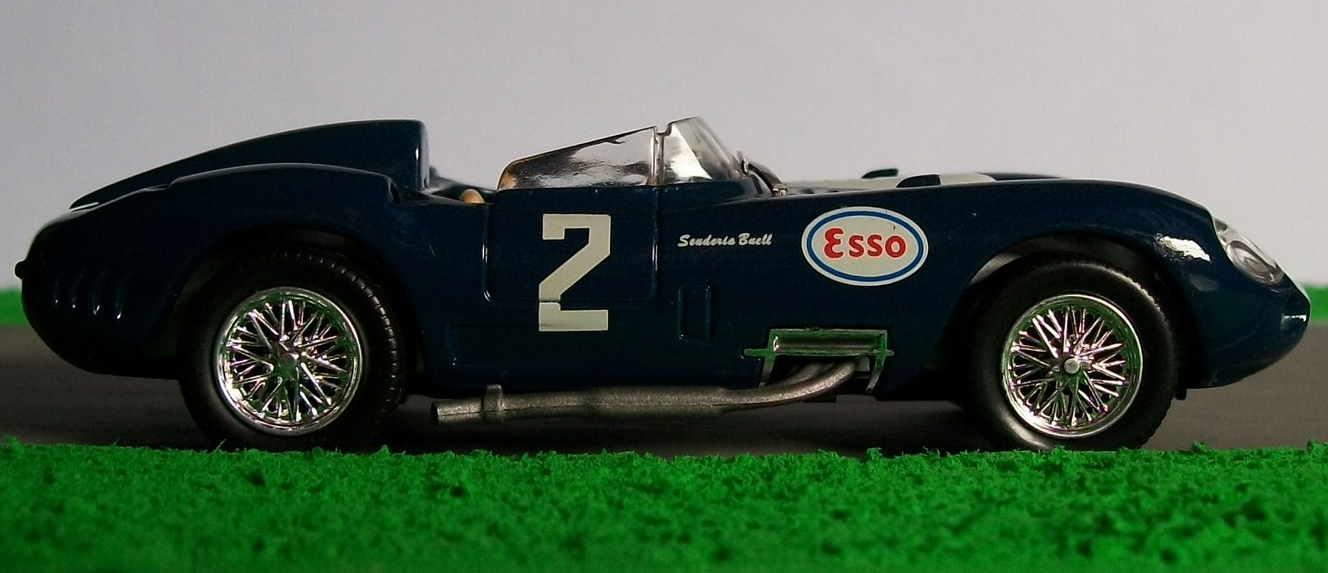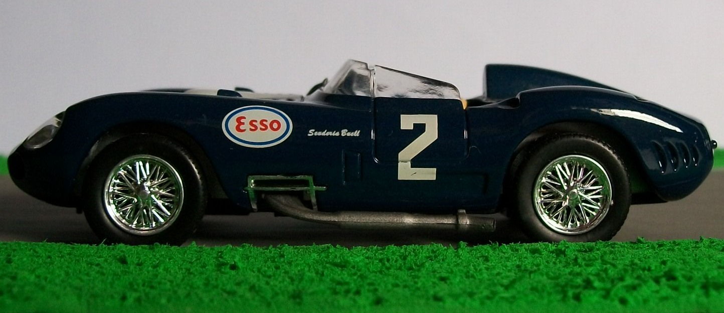 Hola amigos, hoy les presento un Maserati 420M/58 "Eldorado" (fábrica estadounidense de helados que financió el proyecto), que corrió en las 500 Millas de Monza de 1958, carrera también conocida como "La carrera de los dos mundos", o "Monzanapolis". En esta carrera (disputada en 1957 y 1958) se enfrentaban coches de la Fórmula 1 y de la Fórmula Indy, con la idea de atraer a los europeos a las 500 millas de Indianápolis, que formó parte del calendario de la F1 entre 1950 y 1960. Este Maserati preparado para dicha competencia, se basó en un chasis de la
