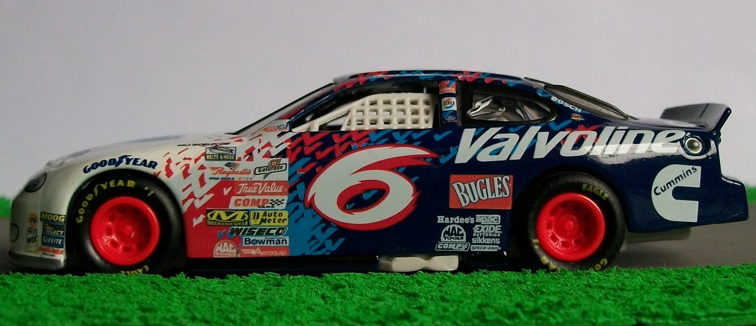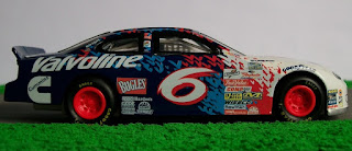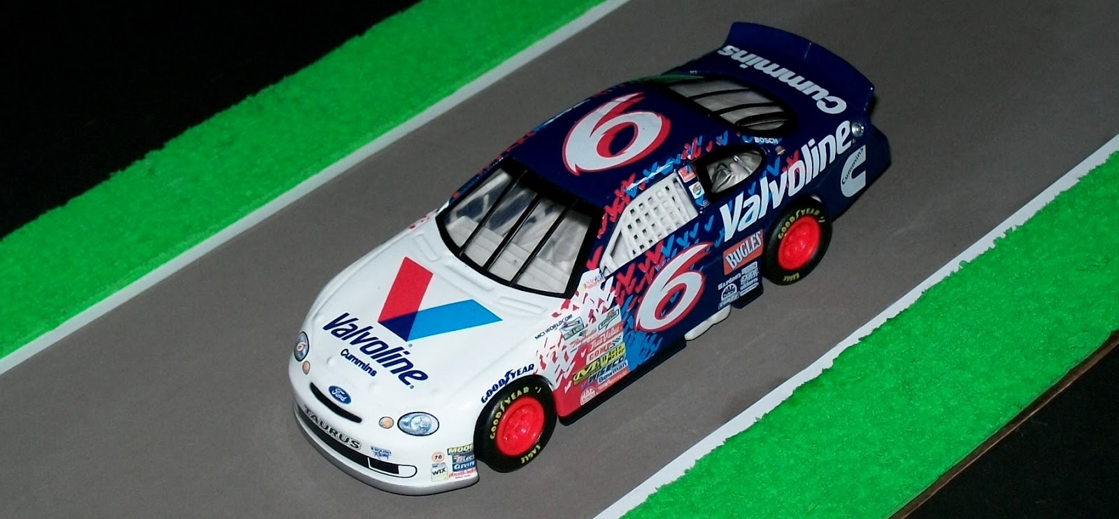 Hola amigos, hoy les presento un Ford Taurus NASCAR, conducido por el piloto estadounidense Mark Martin, al que muchos califican como "el campeón sin corona" de la categoría, ya que consiguió 5 subcampeonatos (1990, 1994, 1998, 2002 y 2009), 4 terceros puestos (1989, 1993, 1997 y 1999) y 3 cuartos (1995, 2004 y 2005), sin nunca obtener el título. El modelo en cuestión, es el que utilizó para llegar al tercer lugar final en el torneo de 1999. La miniatura es de Hot Wheels, y tiene la particularidad, hermosa por cierto, de ser regalo de mi amigo Eduardo GauchoMan, dueño y creador de "Gaucho Models".