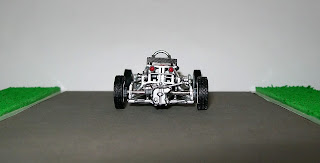 La fábrica soviética Moskvich -fundada en Moscú en 1930- además de coches de calle también fabricó modelos de carreras. El diseño del G5 que hoy les presento comenzó en 1965, pensando en crear un monoplaza para correr en el Campeonato Mundial de Fórmula 1. El motor era un V8 de 1.5 litros; en el diseño de la carrocería se usó el túnel del viento, los paneles estaban hechos de fibra de vidrio, el chasis era tubular, con frenos de disco en las 4 ruedas, suspensiones independientes y caja de cambios de 5 velocidades situada detrás del eje trasero. El Moskvich G5 era una propuesta muy seria por parte de la URSS, pero dos motivos impidieron que el coche corriera en la F1: el cambio de reglamento a motores de 3 litros para 1966 y que el proyecto se quedó sin fondos, ya que la financiación del gobierno soviético se acabó, y la empresa no podía asumirla sola. El proyecto quedó clausurado, pero los coches estaban prácticamente a punto, salvo que no se podía desarrollar el motor V8. Así, en 1968 se utilizaron los monoplazas optando por instalarles un motor Moskvich 412 derivado del modelo de calle. El coche corrió en la Fórmula 1 Soviética (ver también el ZIL 112C), obteniendo el campeonato en 1969, 1972 y 1973 (los dos últimos con la denominación G5M debido a posteriores modificaciones). La miniatura de IST Models corresponde al G5M con el cuál el piloto Yu Terenetsky obtuvo el subcampeonato en 1974.