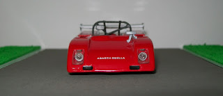 A final de temporada, también su equipo de competición es vendido, en este caso a un colaborador suyo, Enzo Osella, quien junto al Ingeniero Antonio Tomaini (muy conocido años más tarde por su participación en la Scuderia Ferrari de F1), modifican los coches (que se pasan a llamar "Abarth Osella SE021"), y los presentan nuevamente en el Campeonato Europeo, en el que participaban coches con motores hasta 2000cc (en el mundial corrían los prototipos más grandes). En 1972 ganan ambos títulos, el de Marcas y el de Pilotos con Arturo Merzario, quien obtuvo 3 de los 4 triunfos conseguidos por la marca del escorpión. La miniatura es de la firma italiana Metro, y pertenece al coleccionable sobre los coches Abarth; de ellos, estoy presentando una serie de sport prototipos, de los que ya hemos visto el Abarth Fiat 1000 SP (SE04) y el Abarth Fiat 1000 Spider Sport (SE05), de un total de seis modelos que hoy tengo en mi vitrina (ojalá lleguen muchos más!) y que de a poco iré mostrando.