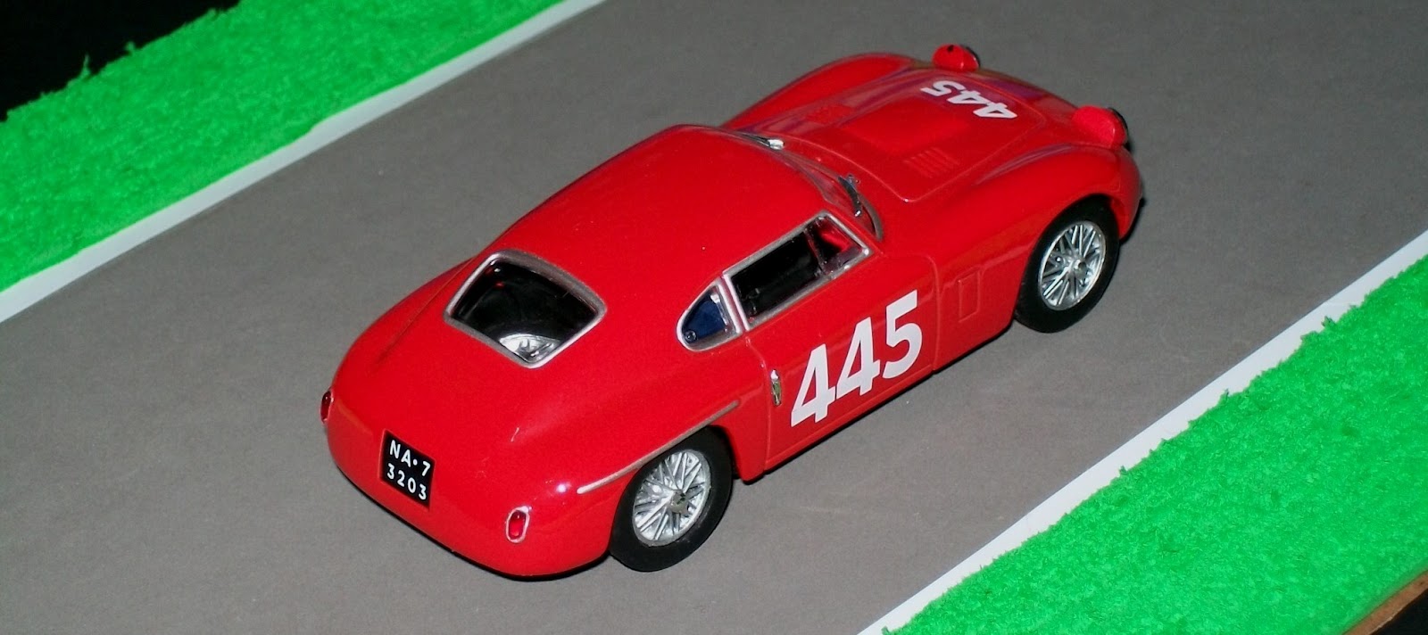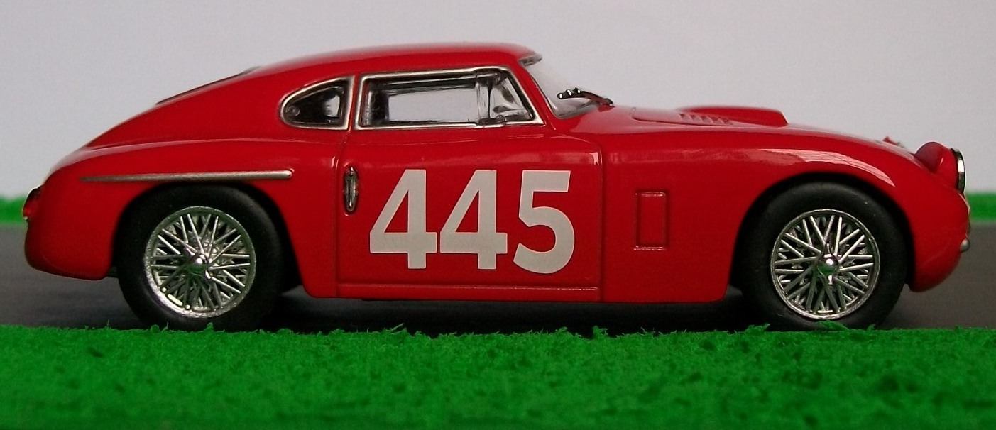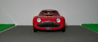 Hola amigos, hoy les presento otro Siata 208 CS Berlinetta de la Mille Miglia, la segunda miniatura que poseo de este bello modelo italiano. Hace cuatro meses vimos uno igual pero en color rojo, pero cuando tuve la oportunidad de conseguir este blanco que les presento hoy no lo dudé: si bien el rojo representa a los coches de carreras producidos en Italia, el blanco tiene la virtud de resaltar las hermosas lineas de esta berlinetta (observen su parecido con esta Cisitalia). Este coche fue manejado por Achille Stazzi en la edición de 1953 de la carrera italiana, finalizando en el puesto 34.