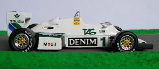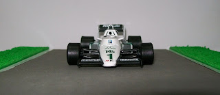 Amigos, hoy les presento al Williams FW07, el auto campeón de F1 en 1980 en las manos del australiano Alan Jones. Vamos a la historia; Sir Frank Williams está en la F1 desde fines de los sesenta, alquilando o comprando coches a otras fábricas para luego presentarlos en su equipo. A comienzos de los setenta, luego de un paso en sociedad con Alejandro de Tomaso (con el bello De Tomaso de F1) deja de lado la compra de autos y comienza a fabricar los suyos, bajo distintas denominaciones: Iso-Rivolta, Iso-Marlboro, Politoys, etc. En 1976, con el apoyo de Walter Wolf compra unos Hesketh 308D, los refoman, y los presentan como Williams FW05. Al año siguiente, compra y remodela un March 761 al que presenta a lo largo de la temporada. Pero el primer "Williams" diseñado y fabricado por el equipo fue el FW06 de 1978. Con ese coche, corre con Jones (1978/9) y Clay Regazzonni (1979), para presentar al año siguiente el FW07 que hoy nos ocupa. Este modelo, competitivo desde el primer momento, no puede ganar el título 1979 por haber sido presentado a mitad de temporada, pero el team se lleva cinco victorias. Para 1980, llega la evolución, el FW07B, con el que Jones gana el título. Y a los "viejos" FW07 de 1979, se los vende al equipo inglés RAM que participa en la F1 de la mano de autos de años anteriores comprados a los fabricantes (al estilo de los comienzos de Williams). RAM presenta en muchos GP dos coches, manejados por Rupert Keegan y Desiré Wilson, y en los dos últimos GP, uno sigue en manos de Keegan (con los colores de Penthouse y Rizla) y el otro es alquilado al Theodore Racing Team de Teddy Yipp, siendo manejado por Kevin Cogan (GP de Canadá) y Geoff Lees (GP de Estados Unidos) con el patrocinio de Rainbow Jeans. El de Cogan es el FW07 que presento hoy. Ni Cogan ni Lees pudieron clasificar para largar en alguno de los dos GP, pero eso es lo que menos interesa...