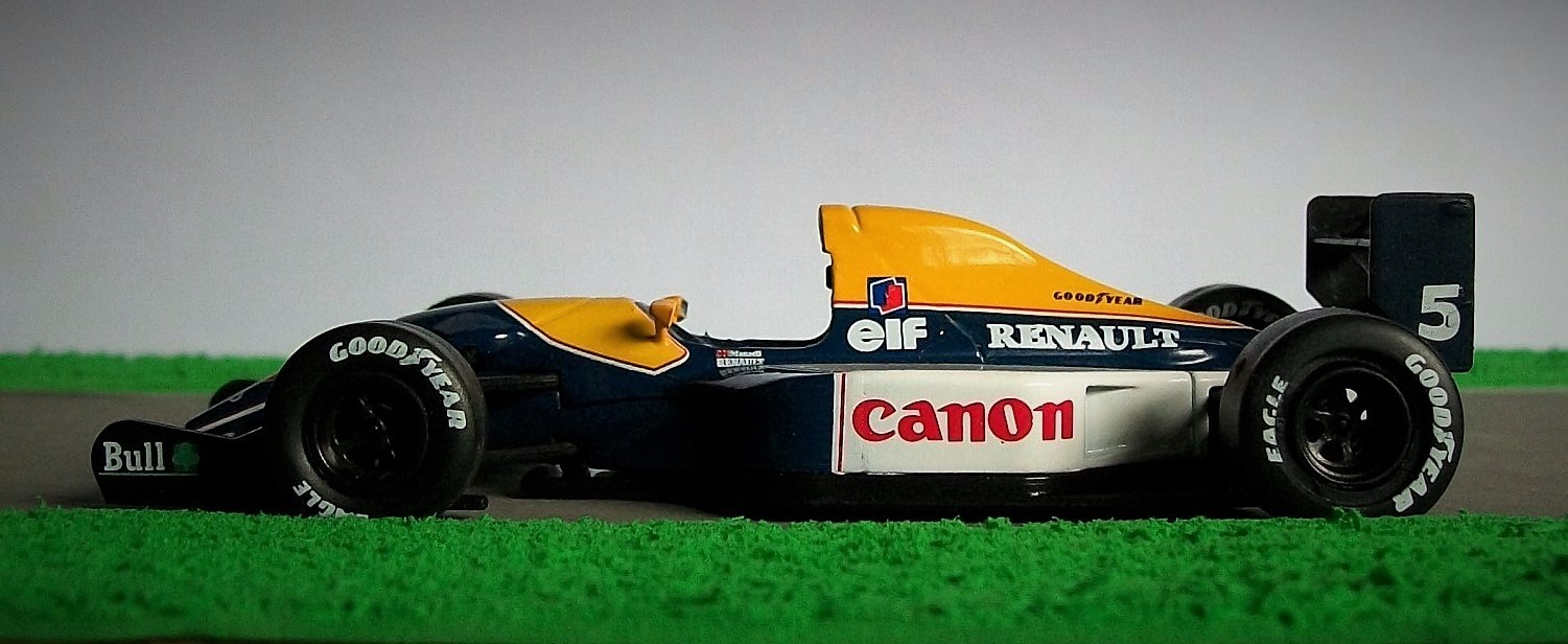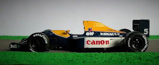 El piloto británico Nigel Mansell logró al fin en 1992 (luego de más de una década intentándolo) conseguir el título mundial de pilotos de Fórmula 1. Lo hizo a bordo del Williams FW14B Renault, doblegando casi en puntos a su compañero de equipo Riccardo Patrese que terminó como subcampeón, seguido de Michael Schumacher, Ayrton Senna y Gerhard Berger. Mansell obtuvo 9 triunfos y 3 segundos puestos, abandonando las 4 carreras restantes. La miniatura que presento hoy de este FW14B pertenece al coleccionable sobre Fórmula 1 que presenta en los kioscos del país IXO-Salvat.